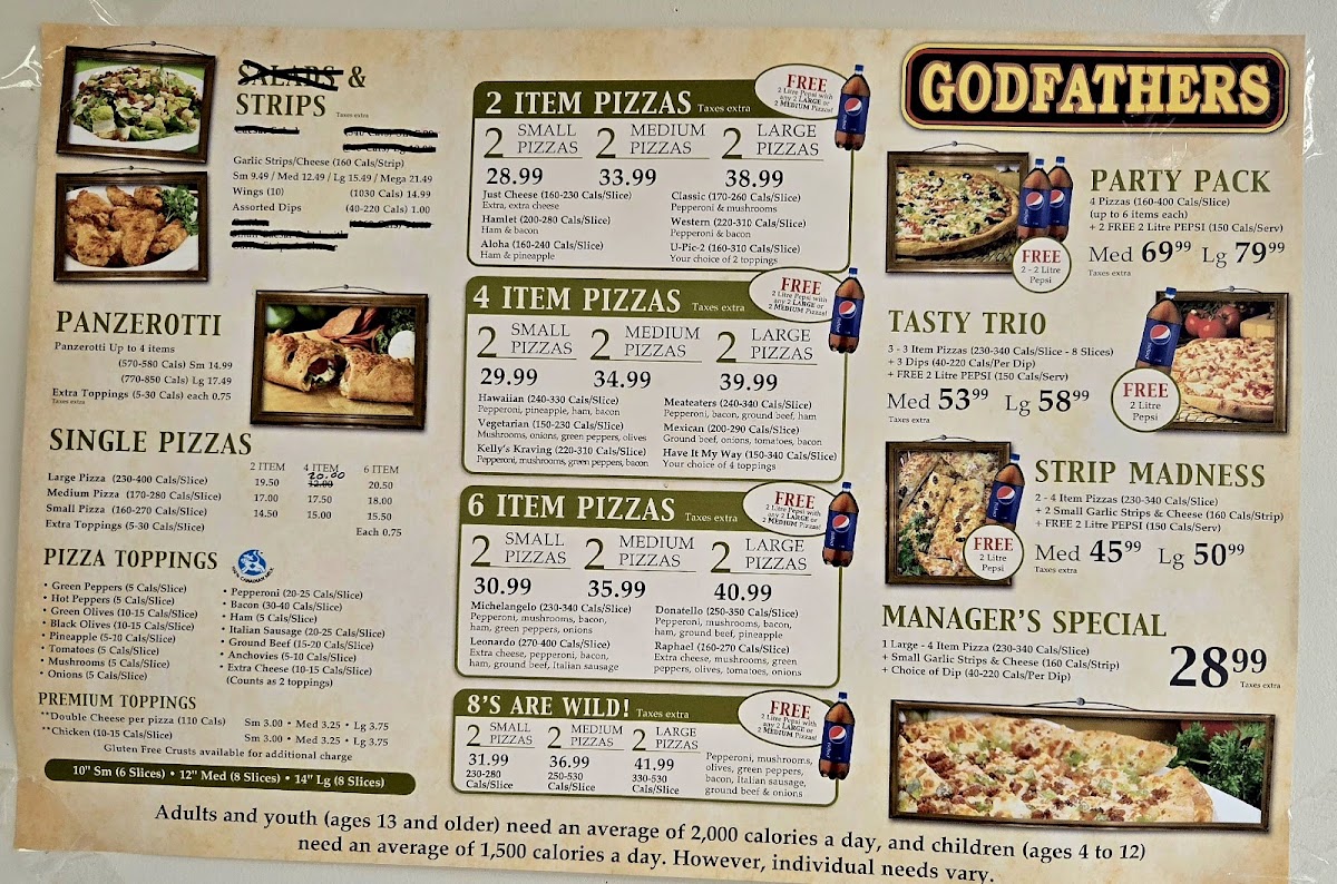 Welcome to Godfathers Pizza - Minden, a local gem located at 12311 Hwy 35, Minden, ON. This pizzeria is renowned for its exceptional pizza that hits all the right notes with customers. As you dive into their menu, you'll discover a wonderful variety of pizzas, including the classic Just Cheese, Hawaiian, and a delightful party pack for gatherings.